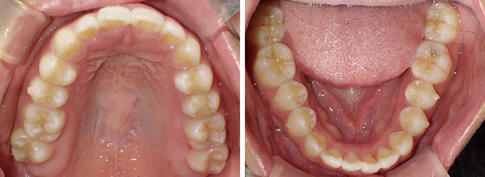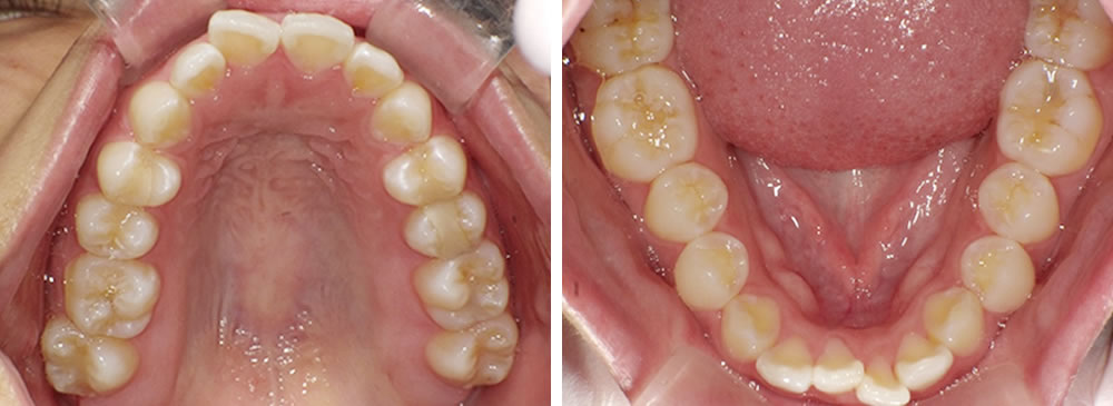ただ下の歯並びはディスキングと呼ばれる、スペースを確保するために歯を少し削る処置が必要になることをお伝えしたところ、お母様から歯を削ることに抵抗があるため、今回は上の歯並びのみすすめることになりました。