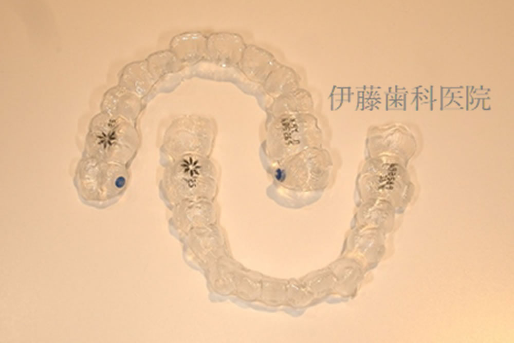 マウスピースの装着時間は症例によって異なりますが、今回は1日22時間以上の装着をお願いしています。